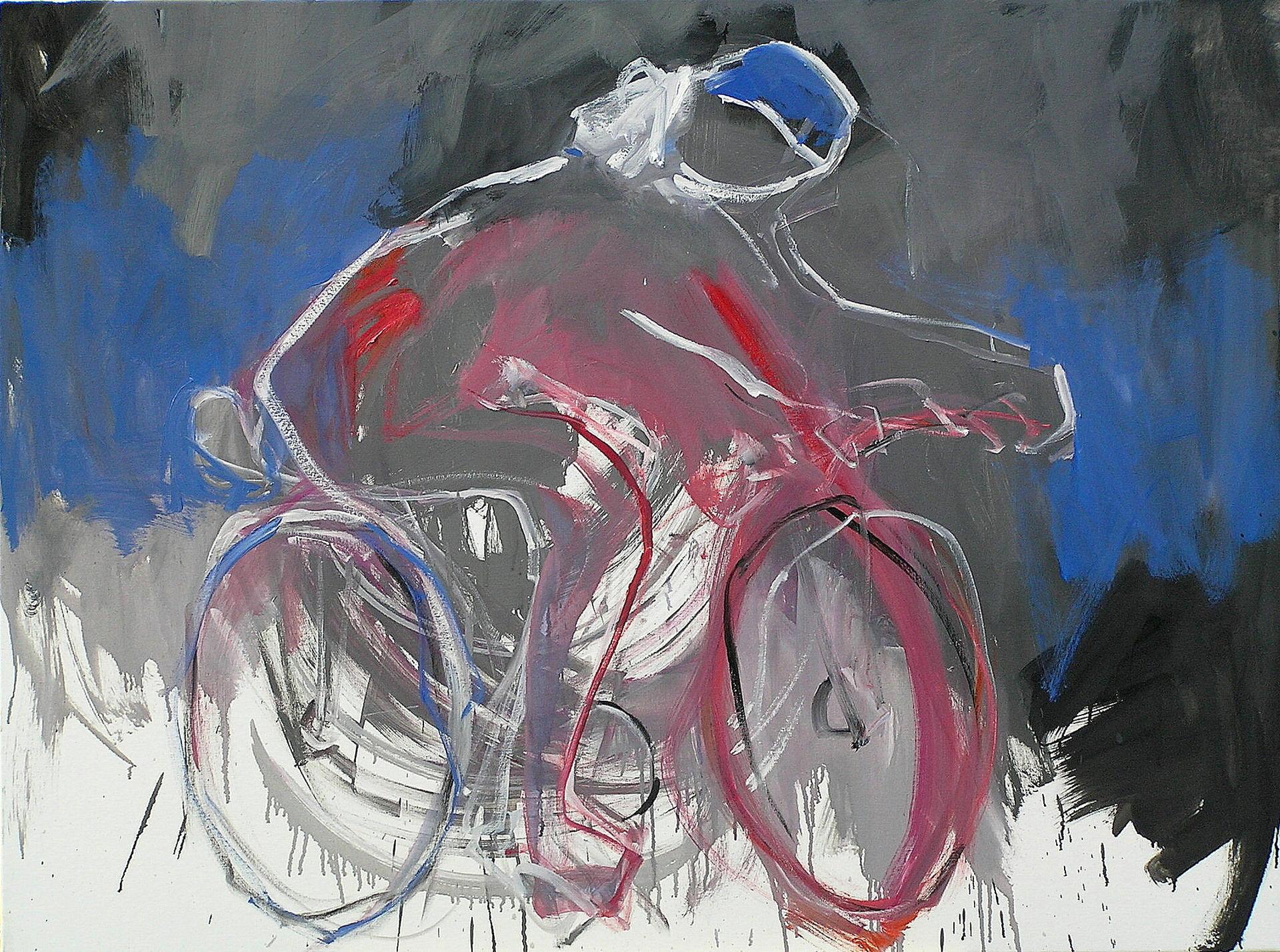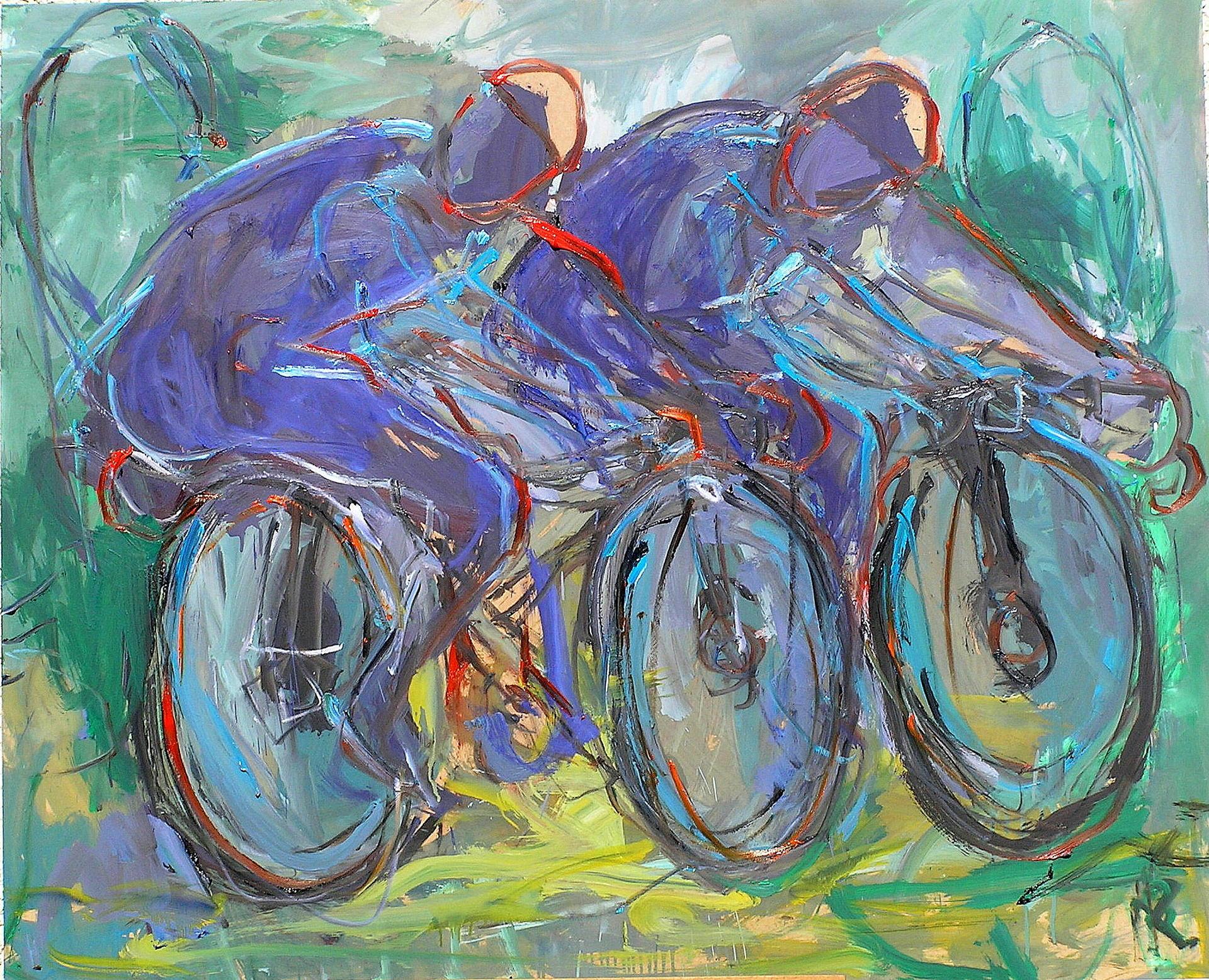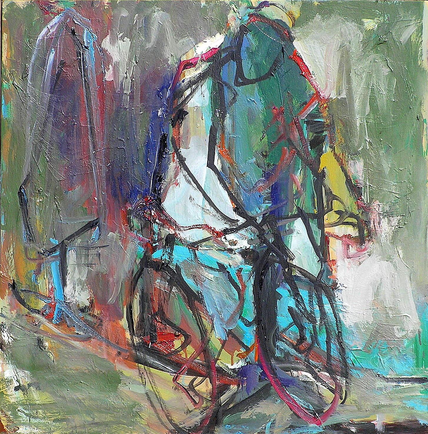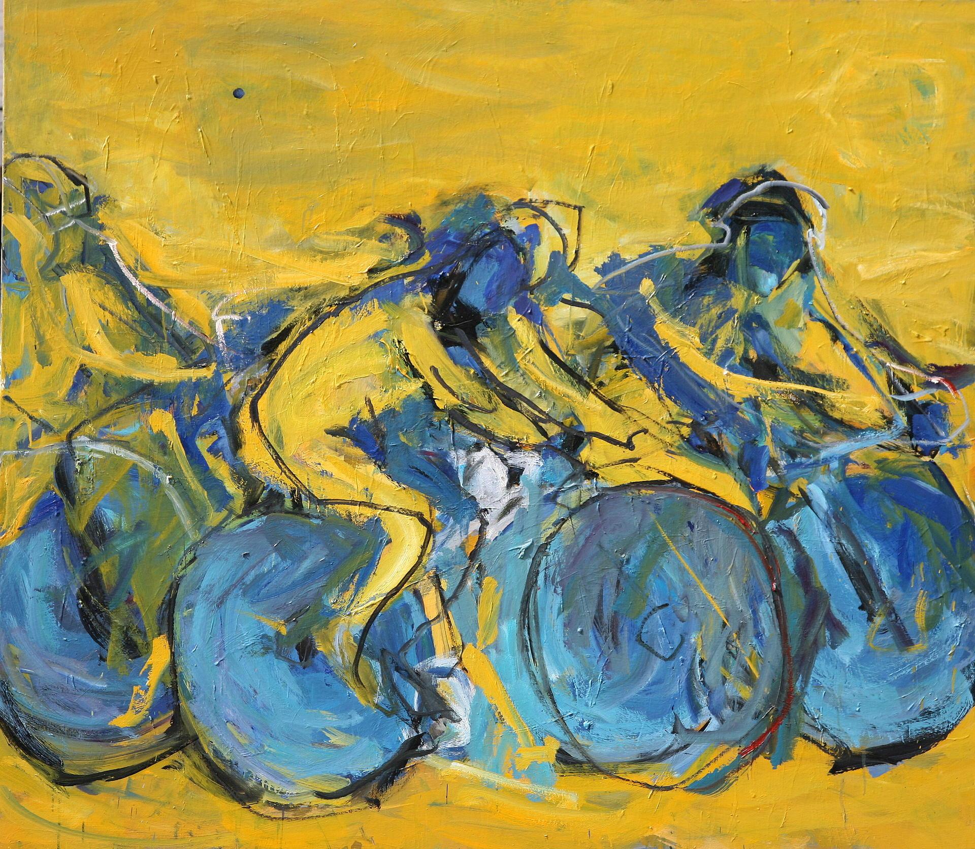 El espacio pictórico desestructura la realidad, la libera de su origen jerárquico confiriéndole agitación, impulso y participación al margen de la tradicional jerarquía fondo-figura. Convergen entre paisajes los Ciclistas, figuras que parecen paseantes del aire, en el que la mancha y la línea son el lenguaje del movimiento.