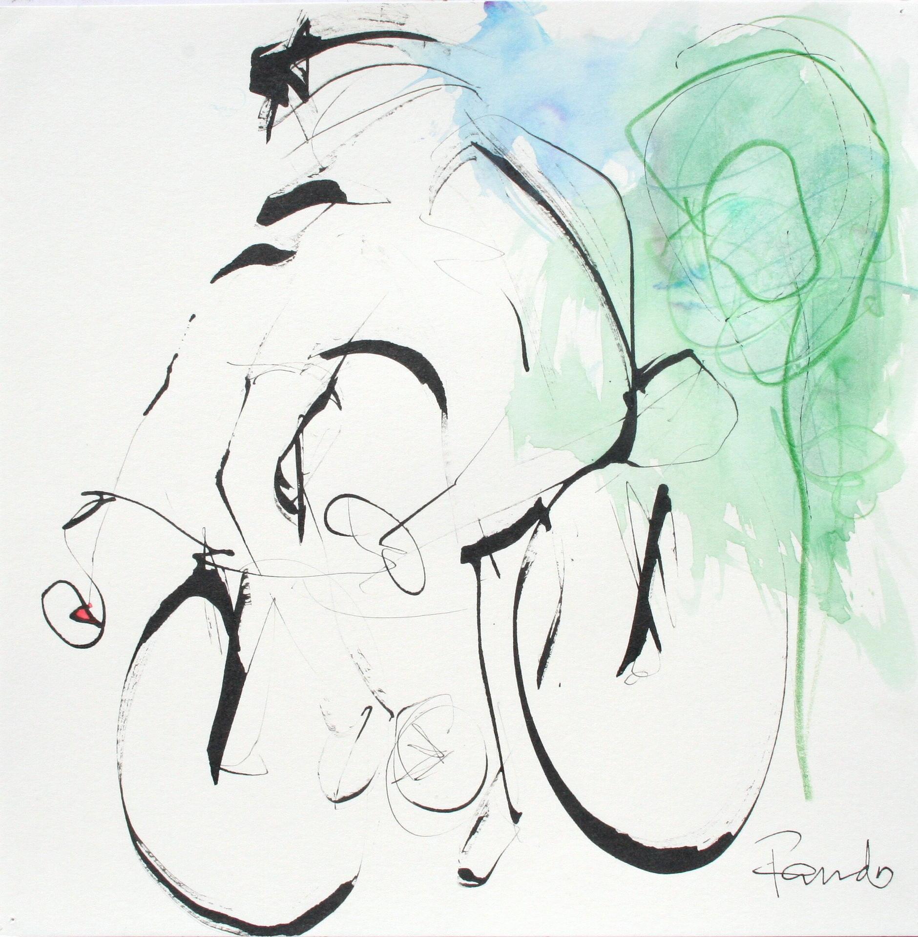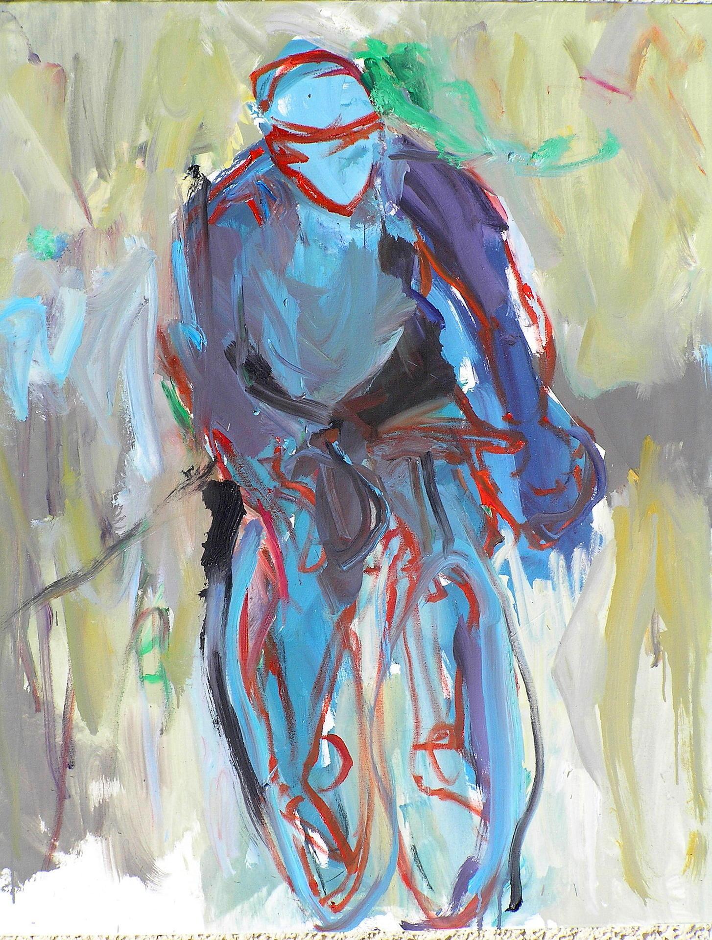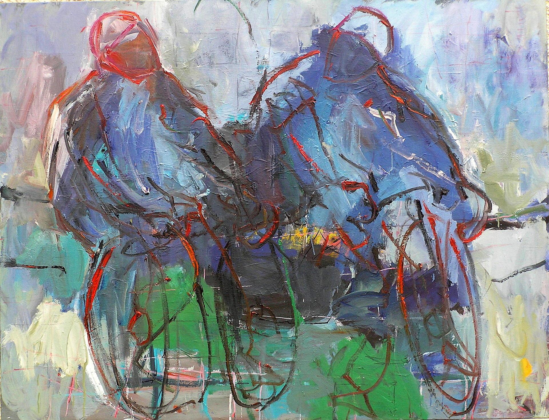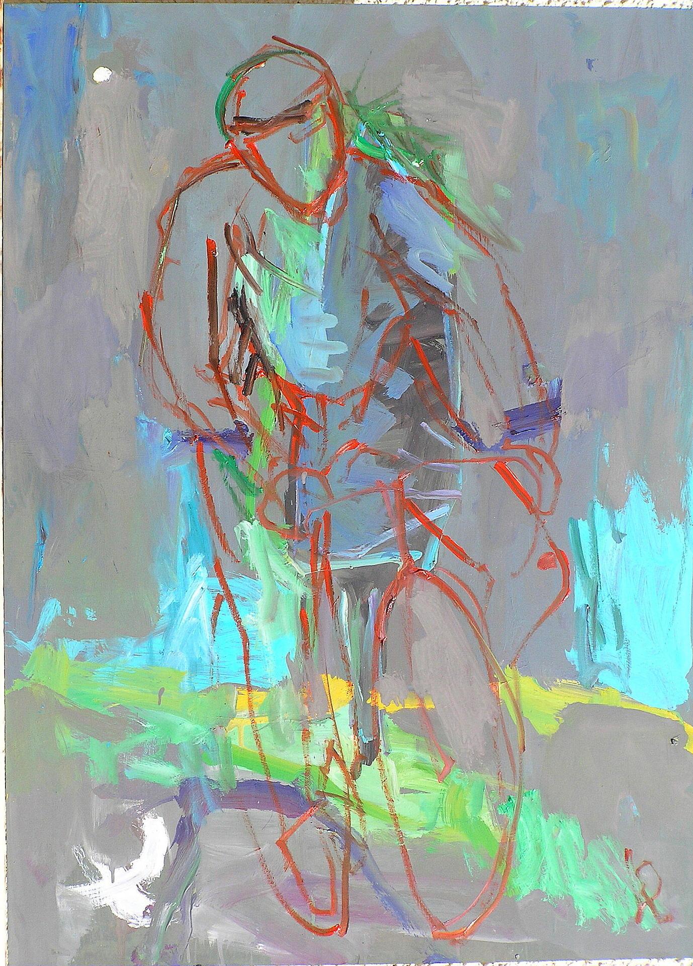 El espacio pictórico desestructura la realidad, la libera de su origen jerárquico confiriéndole agitación, impulso y participación al margen de la tradicional jerarquía fondo-figura. Convergen entre paisajes los Ciclistas, figuras que parecen paseantes del aire, en el que la mancha y la línea son el lenguaje del movimiento.