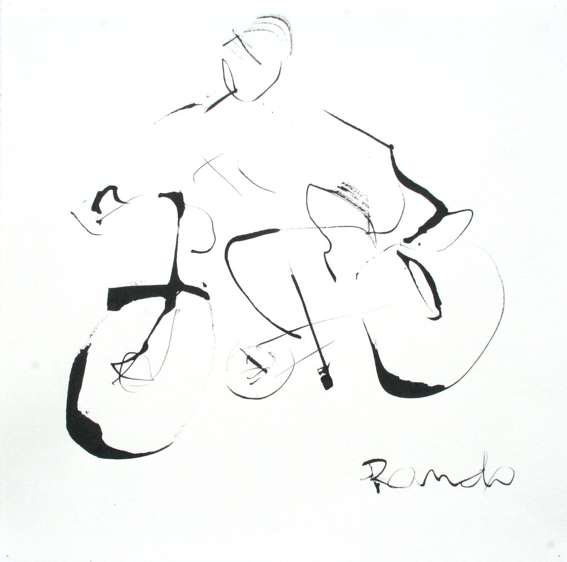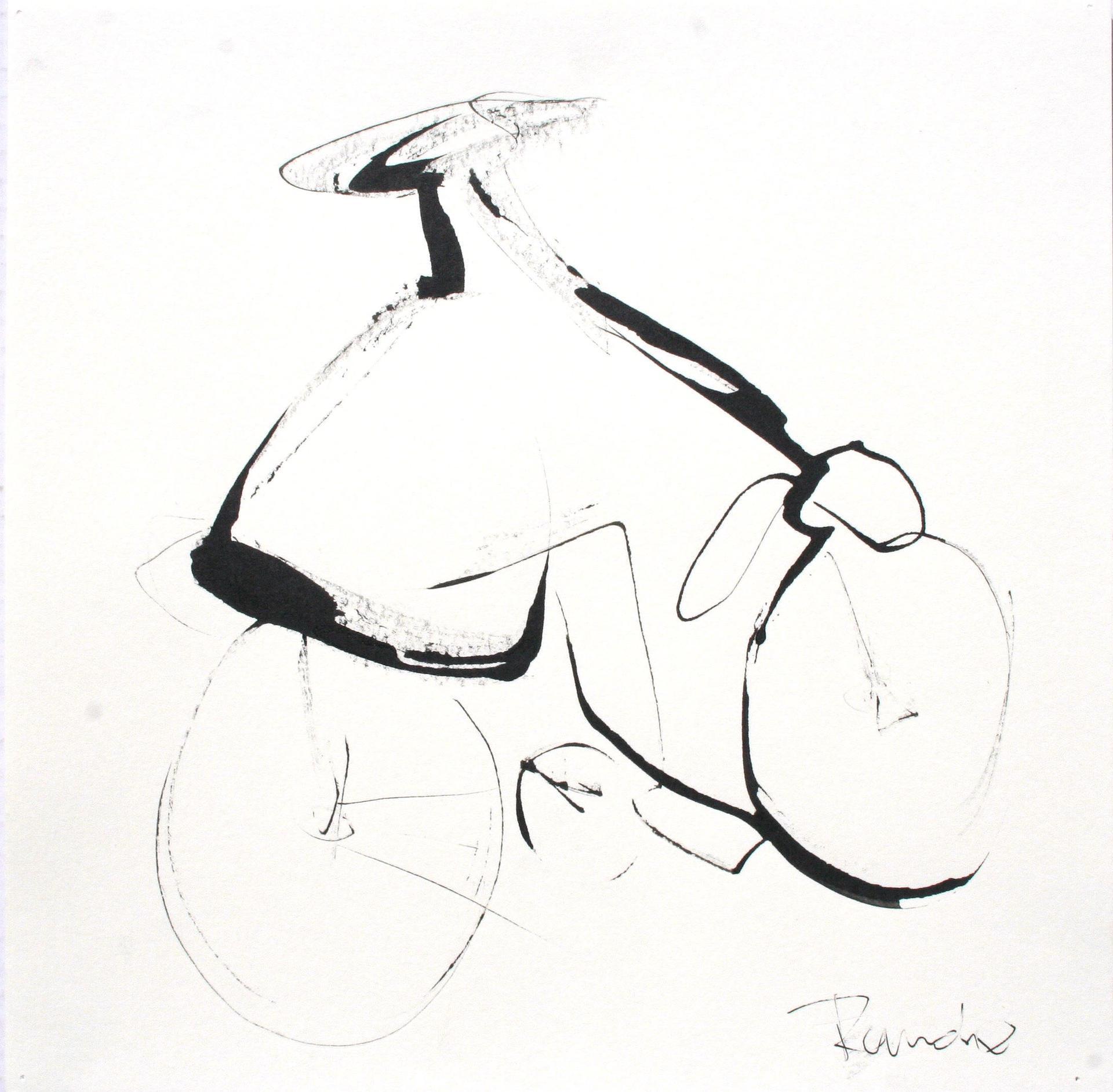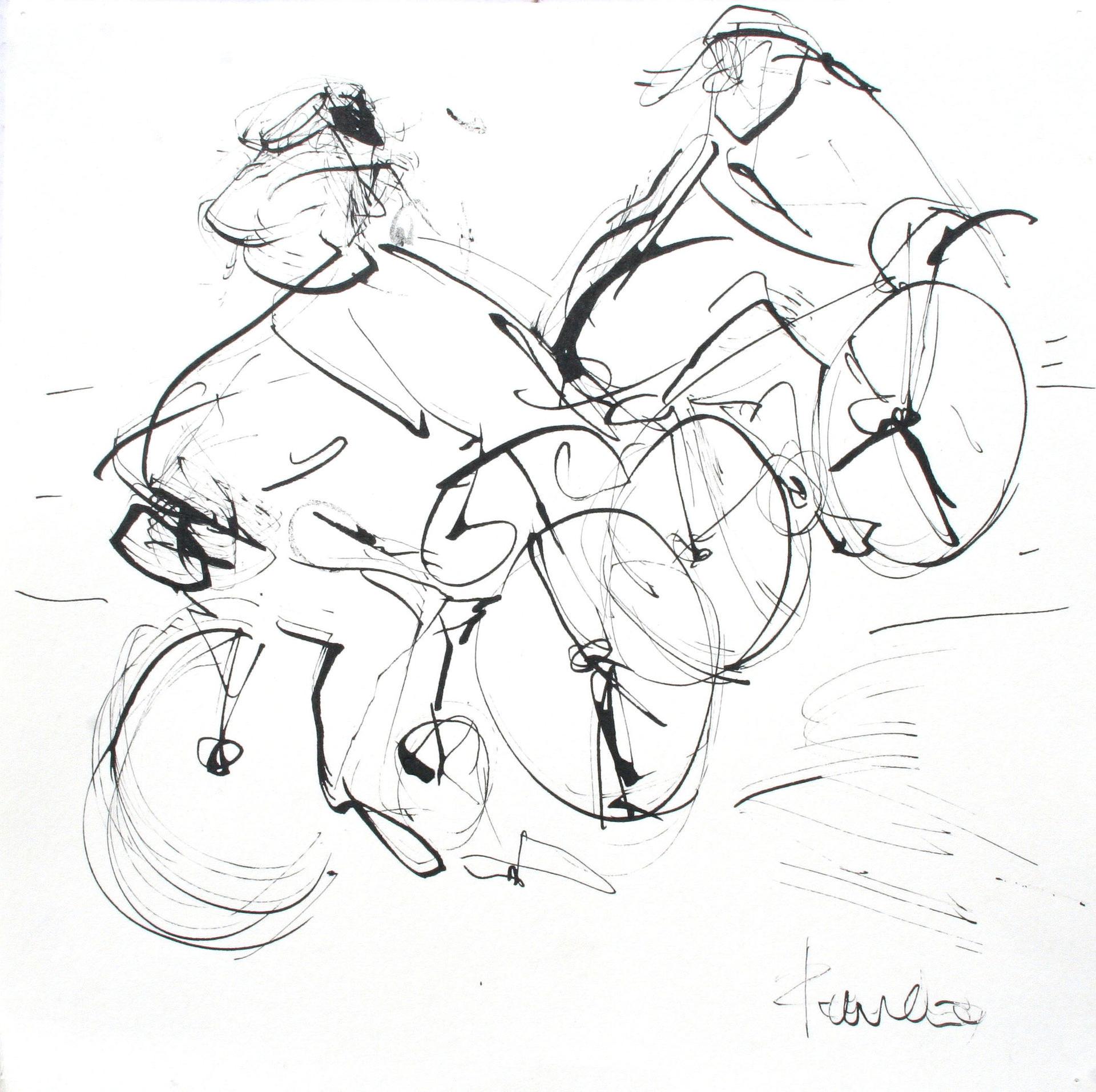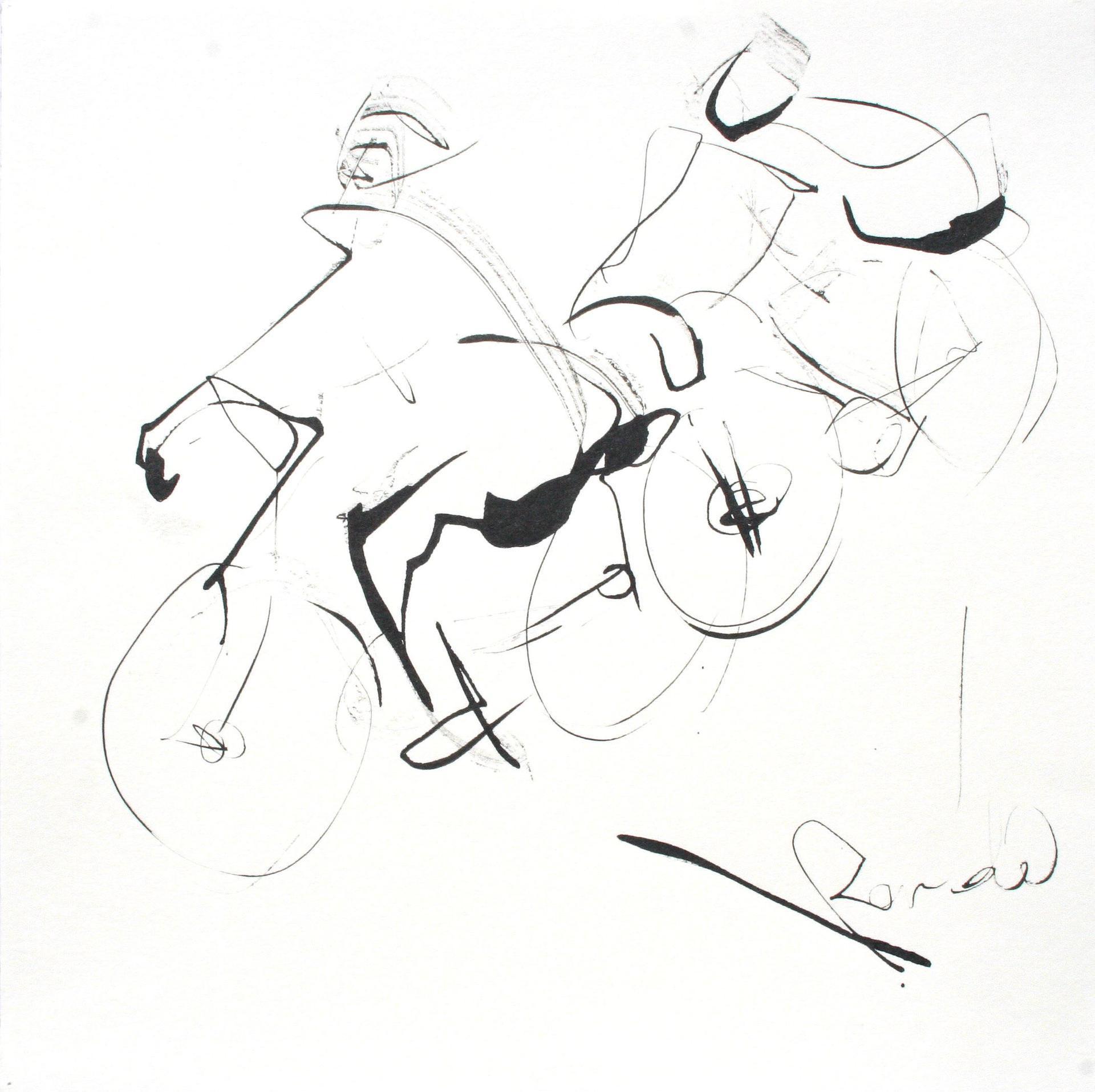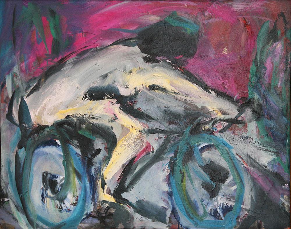 El espacio pictórico desestructura la realidad, la libera de su origen jerárquico confiriéndole agitación, impulso y participación al margen de la tradicional jerarquía fondo-figura. Convergen entre paisajes los Ciclistas, figuras que parecen paseantes del aire, en el que la mancha y la línea son el lenguaje del movimiento.