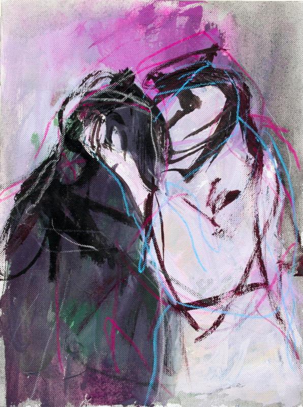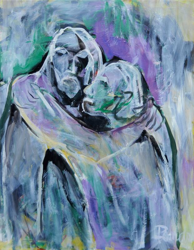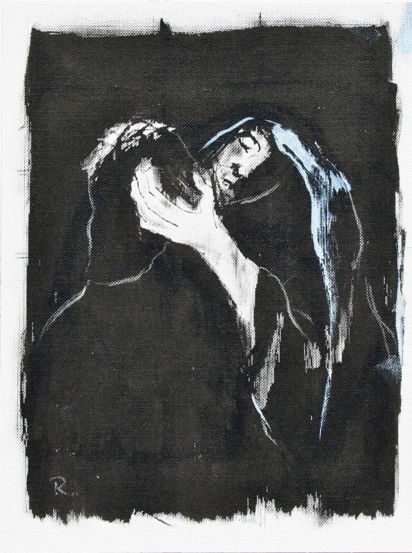 Año: 2005-2007En este cuadro que representa el beso de Judas, el tratamiento del color varía con respecto a las obras que componen el ciclo de La Pasión. Se introducen otras tonalidades. En este abrazo la separación de los cuerpos está indefinida, como si los dos se uniesen espiritualmente hacia un final escrito e inamovible.