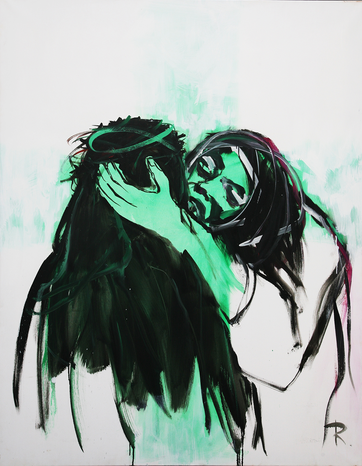 Año: 2005-2007Verde, blanco y negro son los colores que utiliza el maestro en este cuadro que representa un abrazo a Jesucristo.