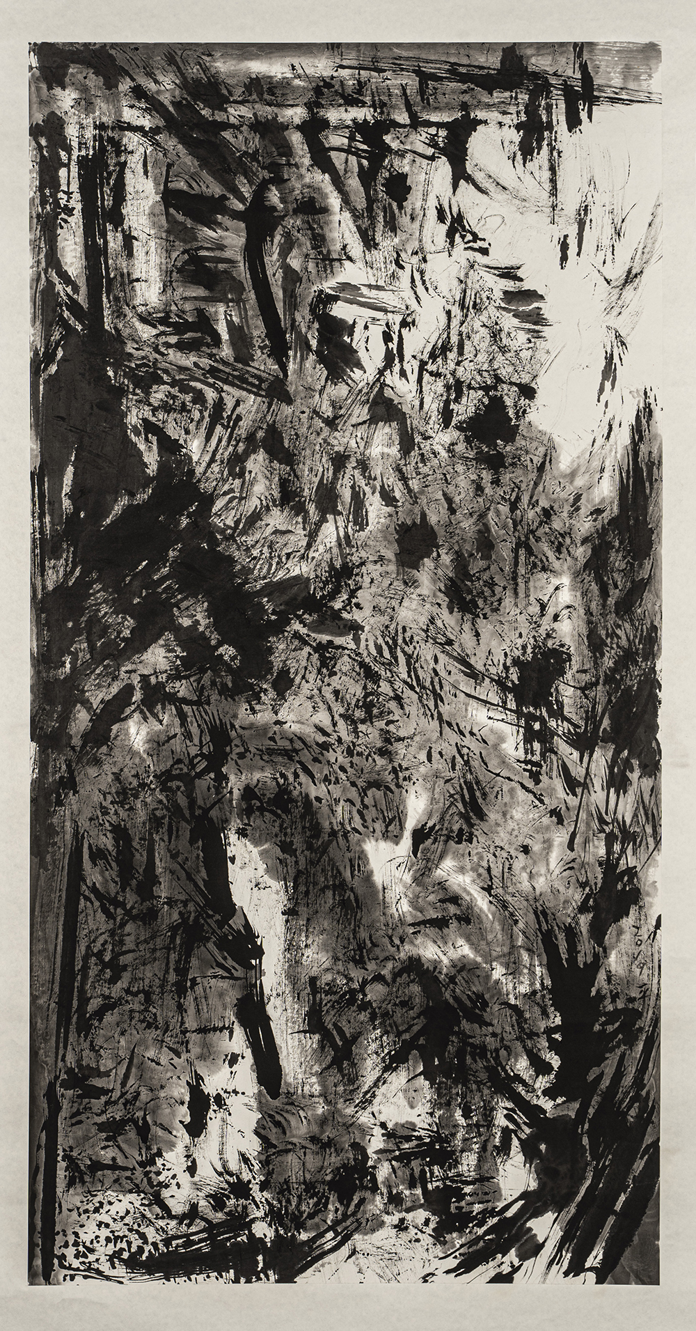 Tinta china, clara de huevo, óxido de hierro sobre papel de arroz
