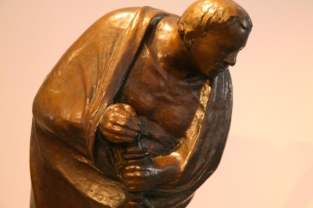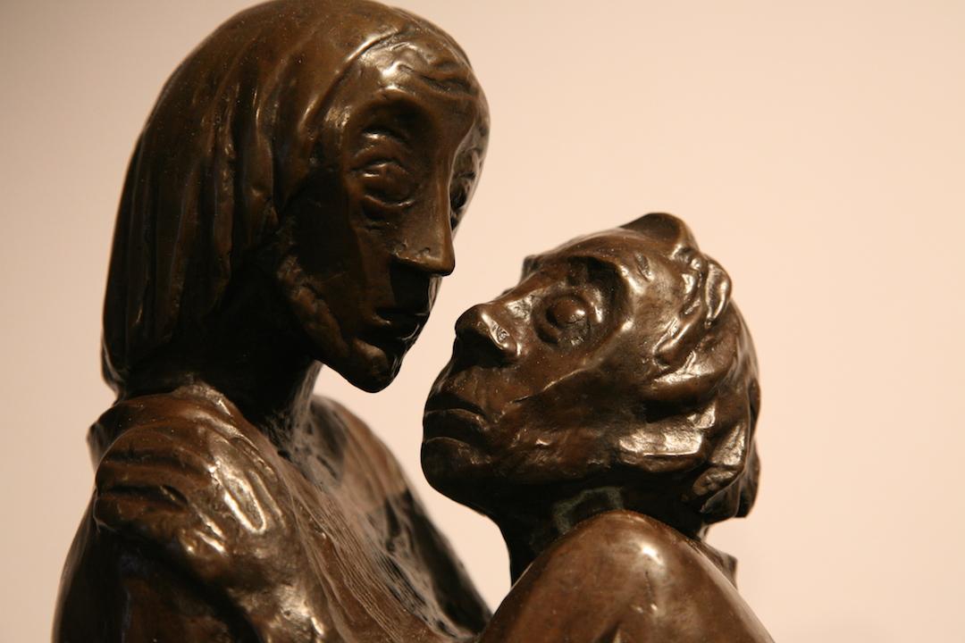 The First World War (1914-1918) revealed the aggressive and destructive force of the scientific-technical era. The quests for everything to be bigger, faster, better; cost more than 12 million human lives, not only on the front but also among the civilian population. For Barlach, there were no winners or heroes in this war, only losers. So, in the following decades he never tired of warning of the dangers of war and committing himself to peace. This is not only reflected in his painful and unhappy figures but also by beautiful, hopeful characters such as singers, musicians and dreamers who are able to rise above the disrupted state of the world.